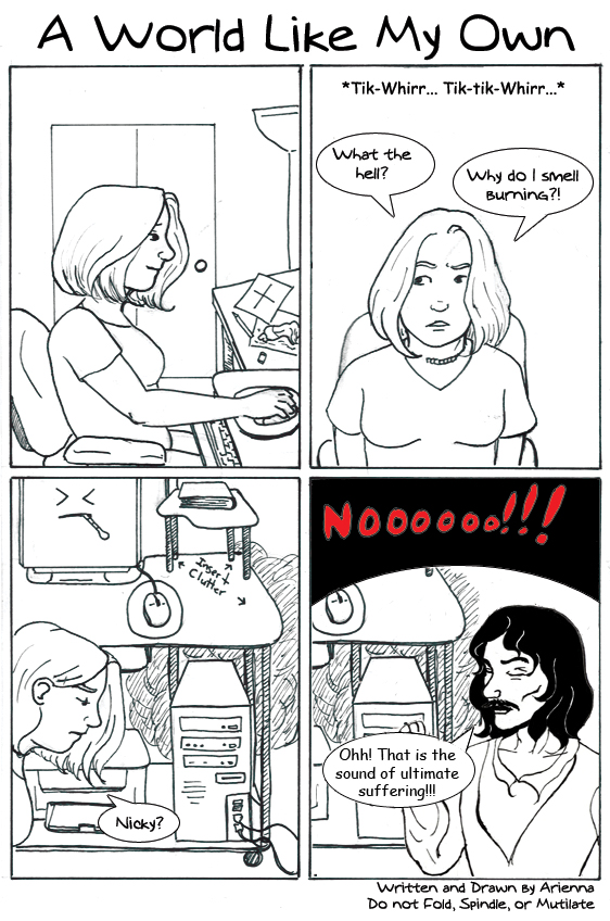 AriennaOkay, before anyone freaks out, this actually happened awhile ago. ^_^; But I had a couple jokes about computer shopping so I thought I'd do a little mini story arc, drawn from events from the not-so-recent past. My Nicky is a fully functioning kick-ass piece of machine. Otherwise your comic artist would be a gibbering wreck in the corner. Trust me. In other news, I'm gainfully employed again and I've been working my ass off (it is gone! There is no ass anymore - someone pass me the donuts) to try to recover my sense of financial security. Any donations to the "Arienna actually gets to work less than 11 shifts this week" fund would be much appreciated. ^_^ Until I get my finances straightened out, updates are gonna be even shoddier than usual. :/ Sorry guys. Check out the gallery, I'm posting up some of the stuff I've been drawing on my lunch breaks. ^_^ I'm still alive and kicking. I get to work the local Ren Faire as the -only- Beer Wench. Life is -good-. If you're in North Carolina and wanna come and fuss over me (and slip tips into my bodice), I work all weekend in the beer Garden at the faire. I'm taking along some of my silly awlmo fliers, so if you speak up, I'll hand them out. They're tiny versions of the old Boobhazard poster (Still available for $5 a piece). It fits my leather bodice look. ^_~ Anyway, if would tickle me all kinds of pink to see some fans again - I'm hoping to catch a couple conventions this summer, if I can get the funds together, and maybe pass out fliers or something. But until then... I'm going to bed. Nini ^_^ P.S. This joke amuses me every damn time I use it. |