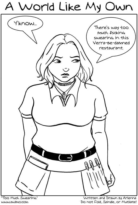 Whoops - early update. When you're too tired to work your update timer properly, it's time to take a nap. I couldn't sleep last night to save my life. o.O I wound up laying on the floor all night hollering along to Irish drinking songs. There are many, many worse ways to spend the wee hours of the night. ^_~