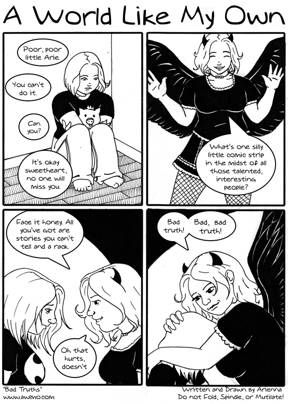 Surprise boys and girls, it's the return of the angel girl in her new Aspect. :D For all that this is an awful comic and a direct metaphor for how I was feeling, when I was trying to get myself together to go to the con... I really had fun drawing this comic. I'm not sure why.