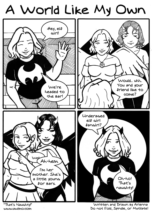 AriennaToday's comic was briefly delayed because of ducks. No, no. It's best not to ask. Now someone pass me some matches so I can burn the evidence. Also, my life requires more opportunities to draw under-aged elf girls. |