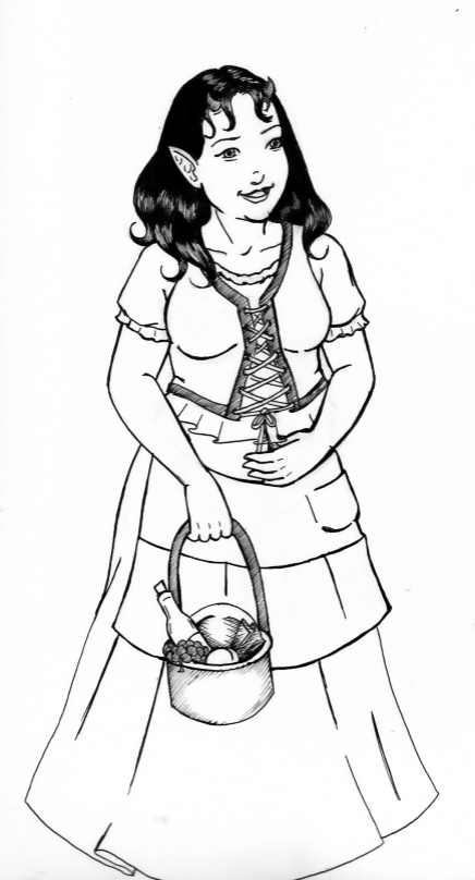 This is a sketch of a character from the NERO piedmont larp. ^_^ That's a North Carolina chapter of NERO, the game I play in. A mystic Wood Elf like the character I play, but a little different. Isn't she pretty? I messed up the high-lights in the hair because I was trying something different and it didn't quite work. Still, it's an okay drawing. ^_^