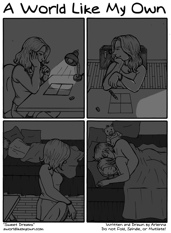AriennaAnd now you all know why the updates have been late these days. ^_~ Thanks to all of you who wished me luck meeting Trent's parents today. I've been getting a bit jittery over it... 10 hours until I meet them, yeek! I'm still trying new things with the comic. New and time-consuming things. We're growing everyday, boys and girls, in spits and spurts and not always successfully... But still. ^_^ |
