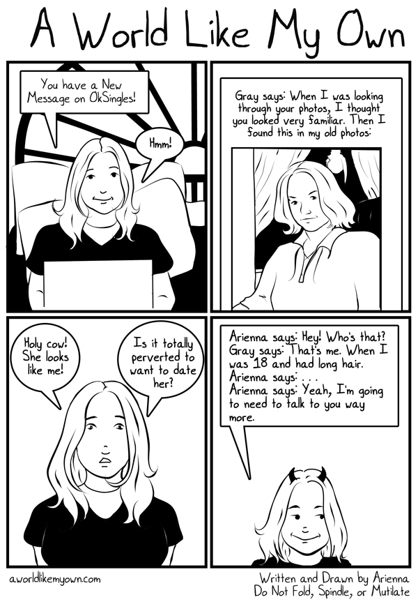 I still sketch out and sometimes draw comics because... it was such an important part of my life. A lot of you know my memory is shaky at best and unreliable. I forget so many things. I originally started drawing the comic as an accessory to my blog, to sort of document my life. Reading the comics and the stories I write about my life is a way of remembering - if I can't remember meeting someone, I can at least remember the story of meeting them. So there's still stories being written and the occasional comic. So.. I thought I'd post one about how I met the wonderful new man in my life.