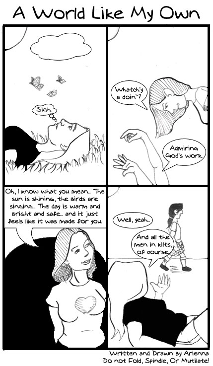 AriennaVoila, a comic! ^_^ Inspired by a trip to the Alma Scottish Festival (which I meant to mention in the comic, but not just yet, apparently). Next comic: Friday! Woot! |