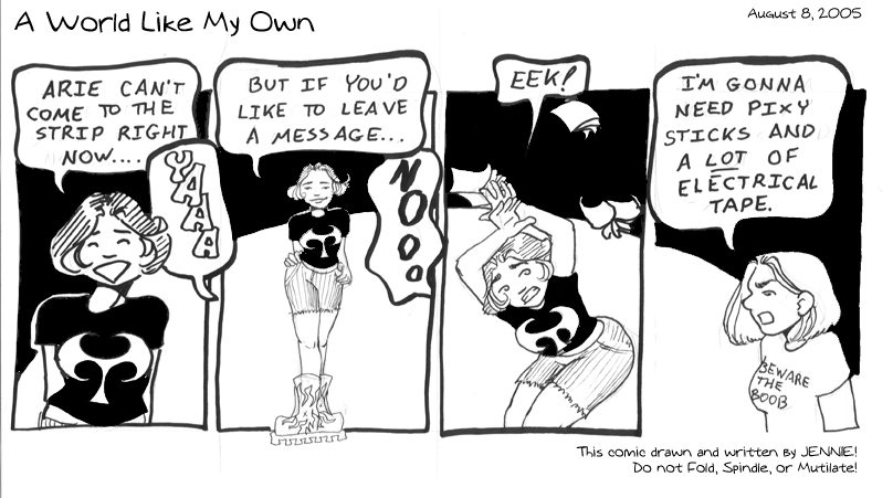 AriennaThis comic was drawn by Jennie!!! :D The con absolutely melted my brain and somewhere between the total lack of sleep and food and all of that... I realized I needed an update for Monday... Only I was driving home Sunday night and I'm supposed to close the restaurant today - absolutely no time to do the comic. So Jennie was kind enough to whip this up for me (in, like, ten minutes flat. What the heck?!), so I could get something resembling enough sleep. |