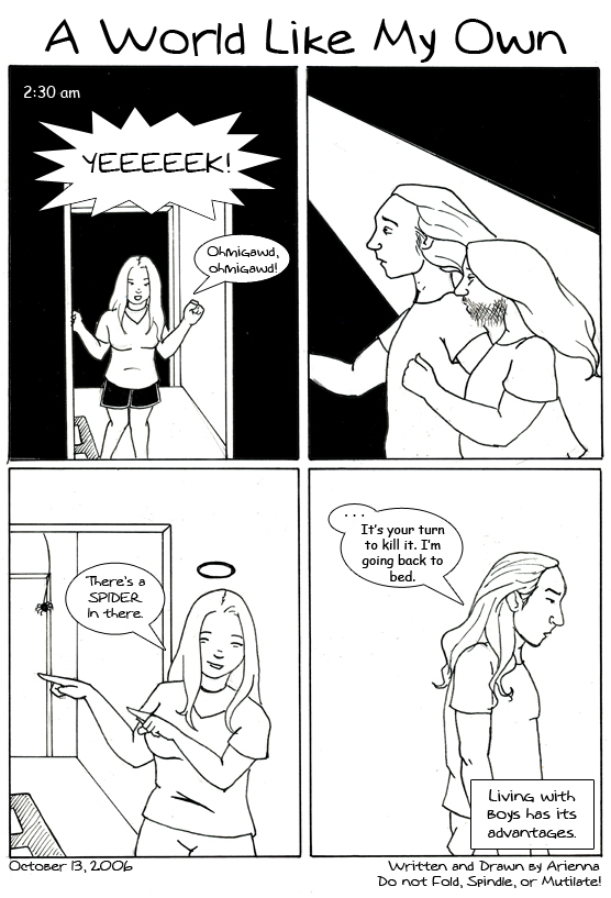 AriennaSo... I drew this up several days ago because I decided to start updating - even if I had to make stuff up. And then last night, on my honour as a semi-autobiographical webcomic artist... This exact thing happened. Oh.Mi.Gawd. The bloody bugs in this state are -huge-. |